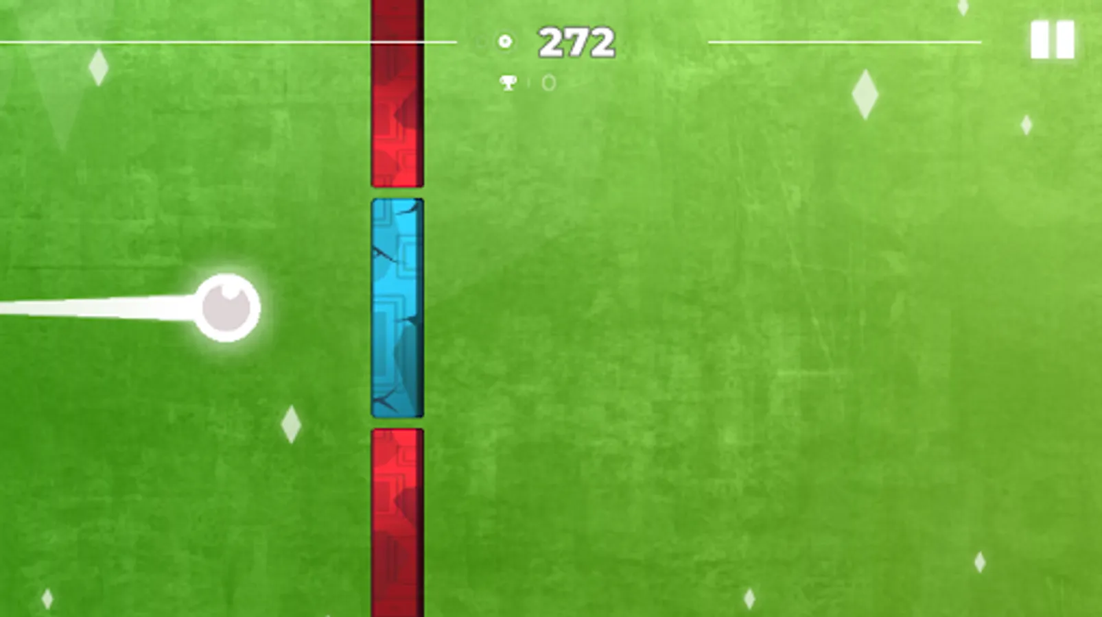 Dodge the red pillars and break the blue pillar to keep on moving forward .