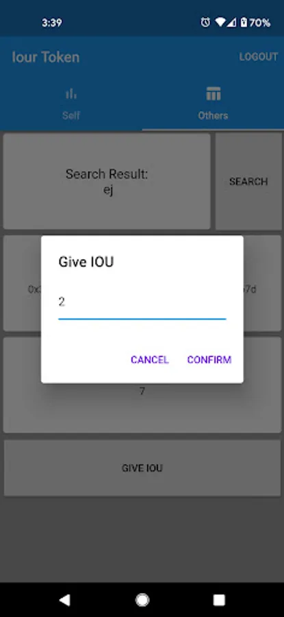 IOU Tokens created, used, and sent on the Ropsten Testnet.