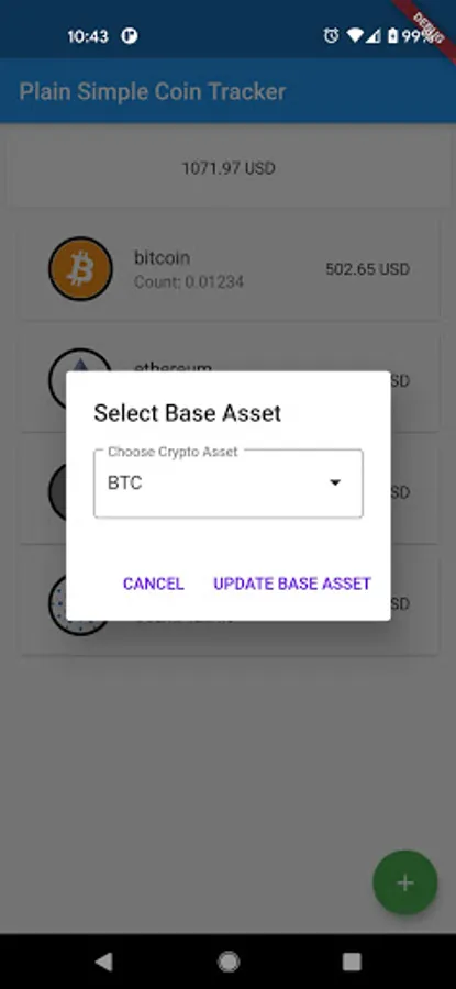App is a simple tool to track current value of assets with user's choice of base Asset.