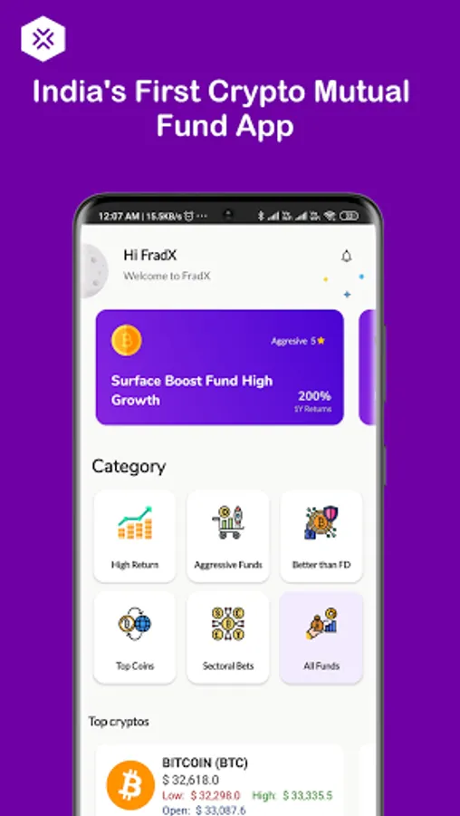 We are FradX, India's First Crypto Mutual Fund application. Fastest Growing in the cryptocurrency industry. With FradX, you can invest in professionally created cryptocurrency mutual funds and pools through your smartphone.