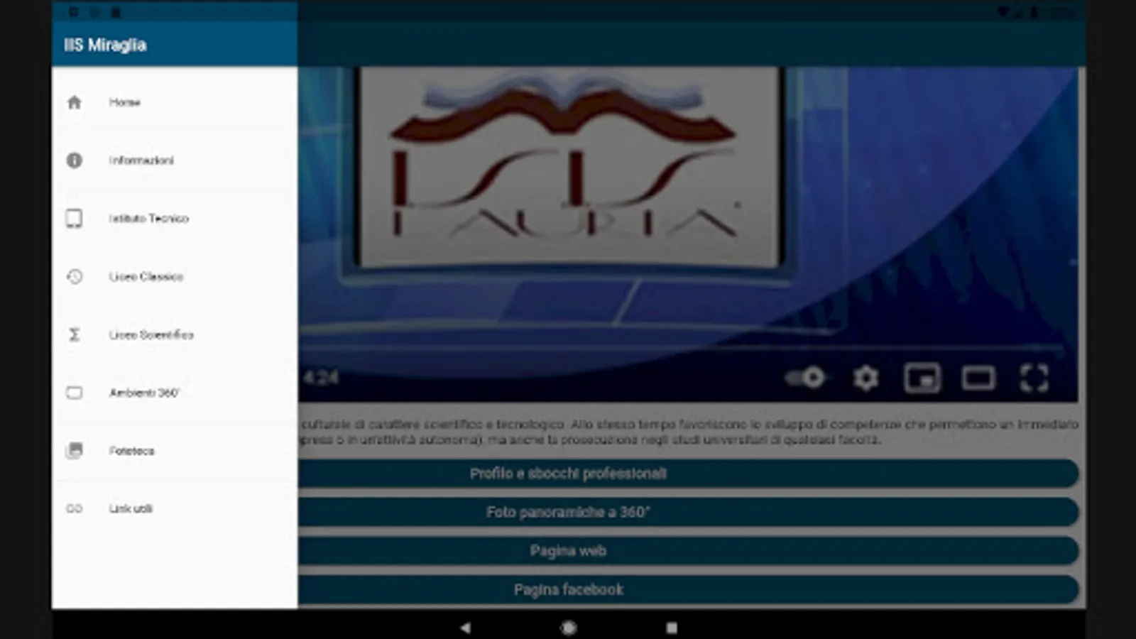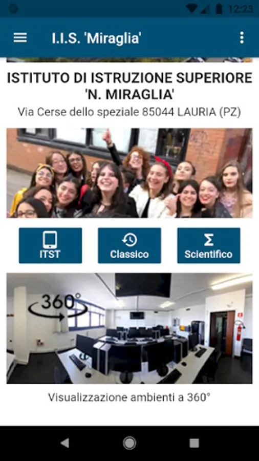 The app provides information about the School, the Institutes associated with it and the active study courses, including through photos and video clips. It is possible to virtually visit some rooms with the help of 360 ° panoramic photos. The app is also connected via links to the website and to the various social networks of the Institute.