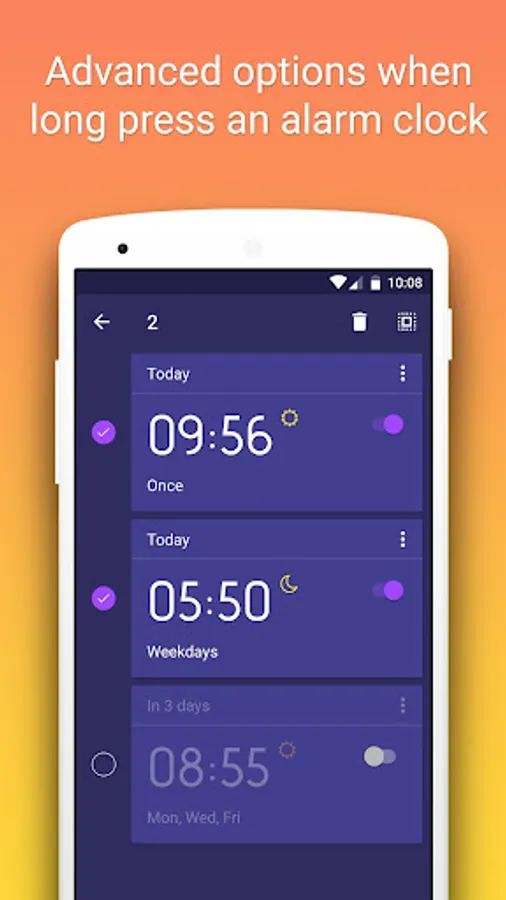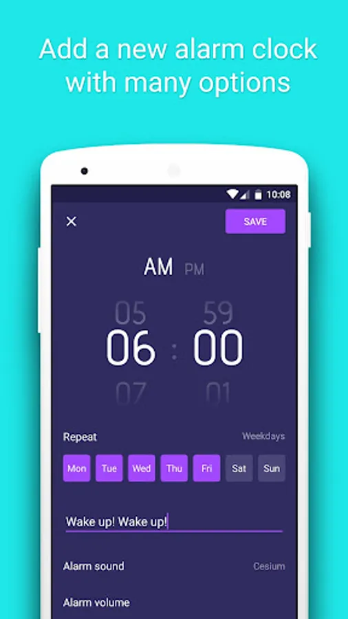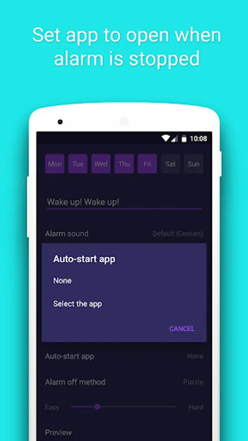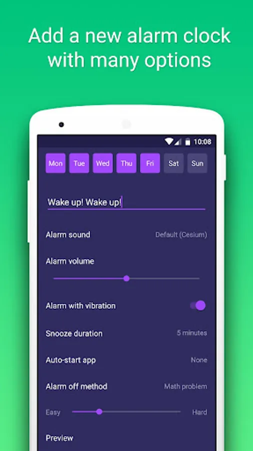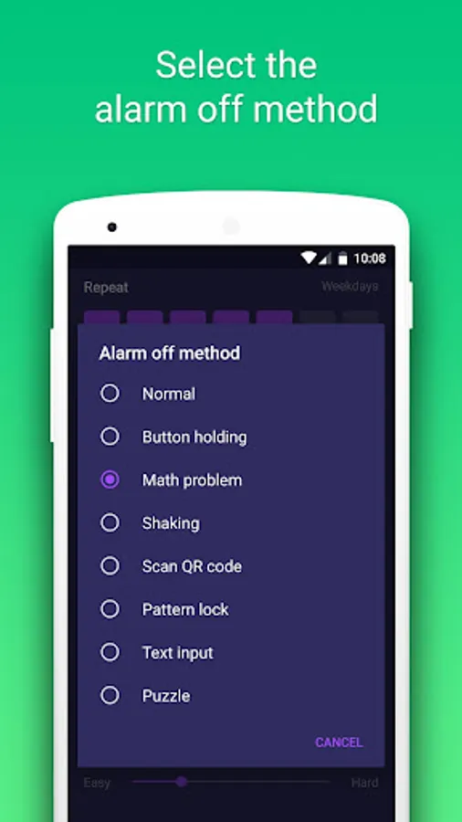 • Normal: similar to other default alarm of Android, and you just have to press a button to turn off the alarm