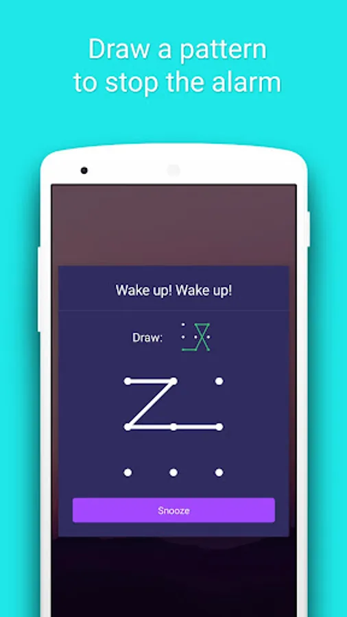 • Draw a pattern: you have to draw a pattern follows the pattern in sample. If you draw correct, the alarm will be turned off. Be notice that this function only is only included in premium version.