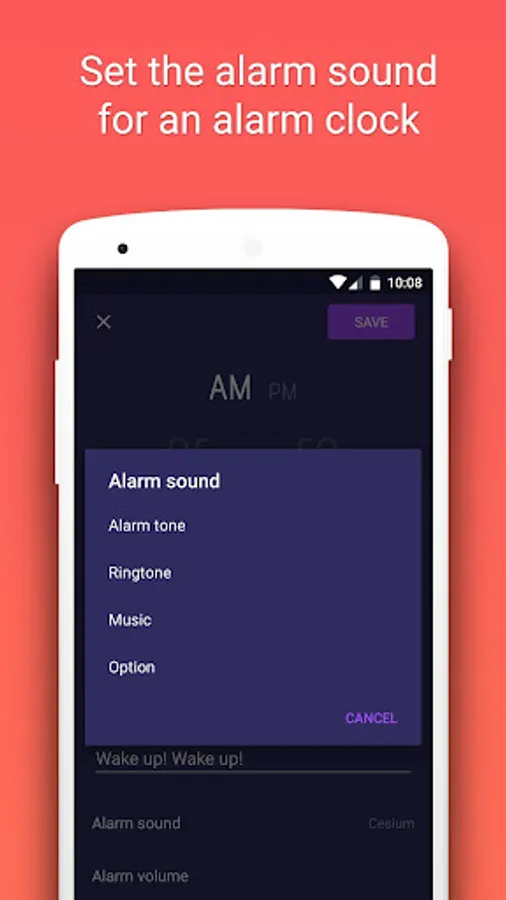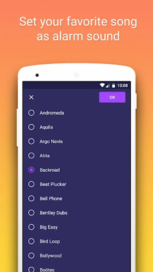 • Choose sounds for alarm from your ringtone list, or a song you like.