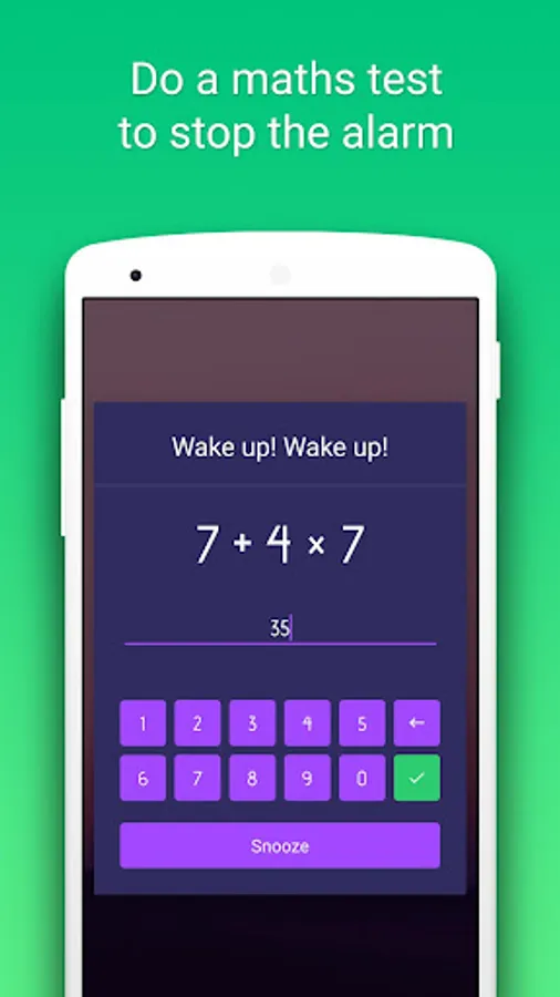 • Do a maths test: you have to do a maths test, if your answer is correct, the alarm will be turned off. There are 5 levels of maths to choose from easy to difficult.