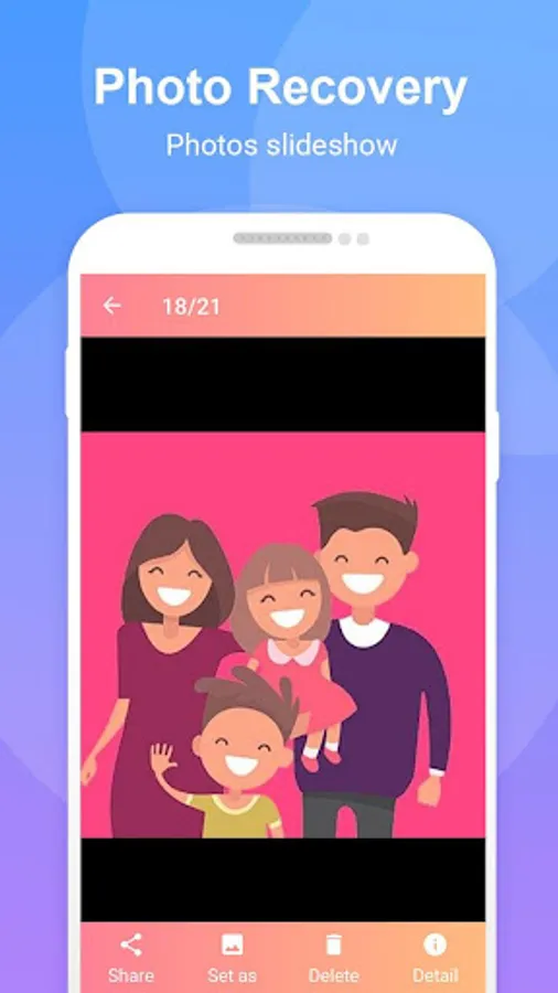 The restored photos will be saved in an album. You can watch it by slideshow. You can share the photos with your family and your friends via social networks. You can set it as your phone’s wallpaper. And you can delete these photos forever if you want.