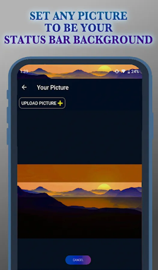 🔥 Add your own custom made pictures to set Status Bar background. Option to choose any picture to be your Status Bar backgrounds for FREE!
