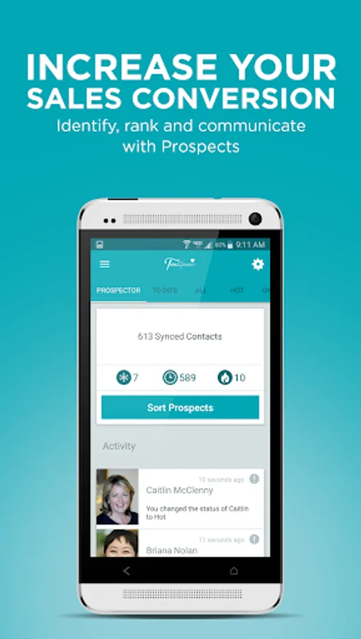 ★ Prospector Utilizing a “swipe-to-sort” format, identify leads with a game-like interface. You will be presented with each contact, one at a time, to sort for potential customers or recruits. Contact prospects, make notes, and schedule follow-ups, all while each interaction is automatically tracked for you.