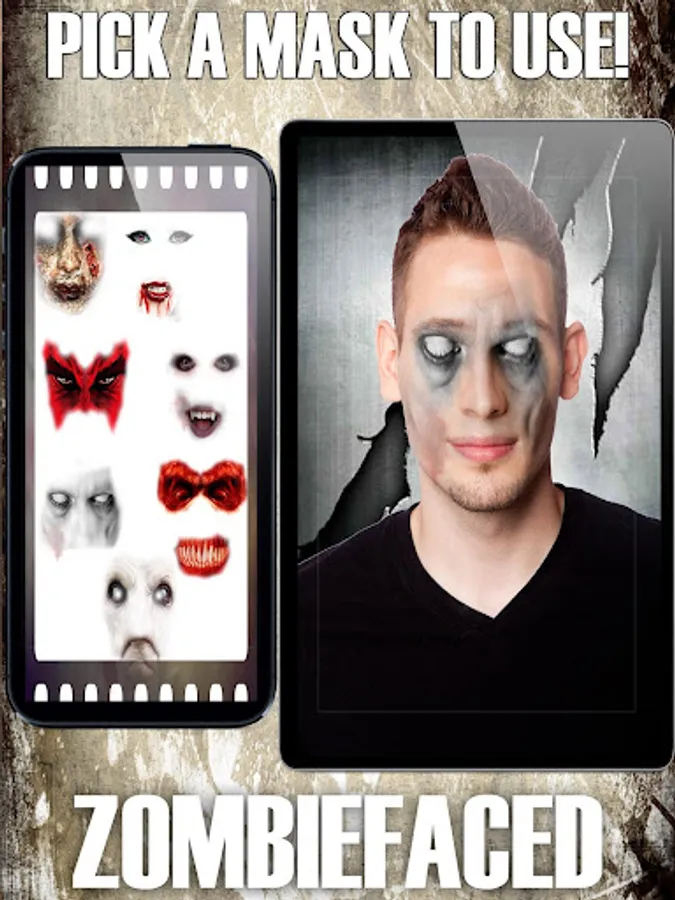 📸 Seamlessly apply masks to your photos: Simply select a photo from your gallery or take a new one, and our advanced face detection technology will flawlessly apply the perfect zombie face mask to your image. Watch as your ordinary photo is instantly transformed into a nightmarish scene that will leave everyone trembling with fear.