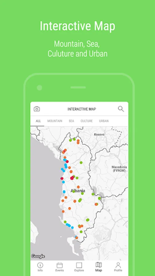 IntoAlbania’s official travel app provides information about travel-related destinations and services while you are in Albania. You can also use it as a tool to plan your trip before and during your stay in Albania.