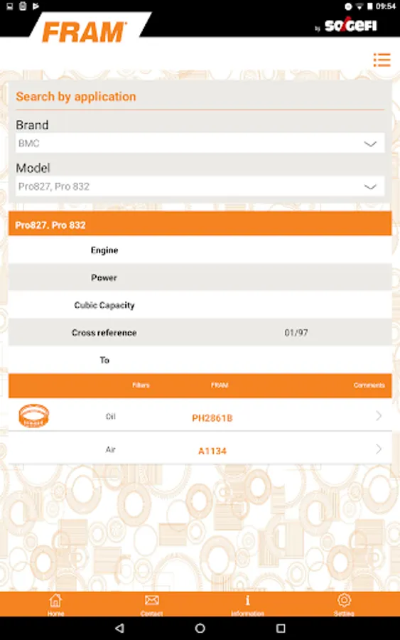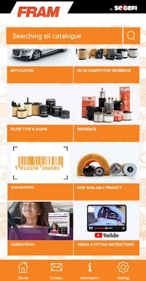 The FRAM Europe app will give you access to the full FRAM Europe range of oil, air, fuel and cabin filters for cars and light commercial vehicles.