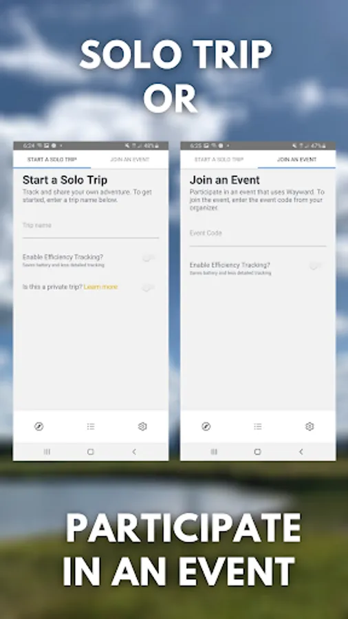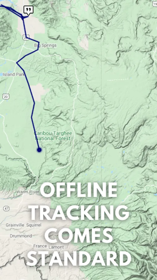 Wayward is a Free app to track and share your adventures. Submit check-ins, track your trip offline, and easily stop tracking when your trip is complete.