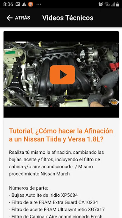 Find all the products you need for vehicle tuning in the best FRAM and Autolite brands, as well as Carter water pumps, Anco windshield wipers, brake pads, Raybestos rotors and drums, and Lusac hydraulics. Our application tells you the filters, spark plugs, oil, water pumps, pads, rotors and drums, brake master cylinders, wheel cylinders, brake hoses and windshield wipers that a vehicle requires, as well as: exchanges against the competition, technical sheets , technical videos, news and releases of new numbers, Technical Service WhatsApp, links to our social networks and wallpapers so you can personalize your device.