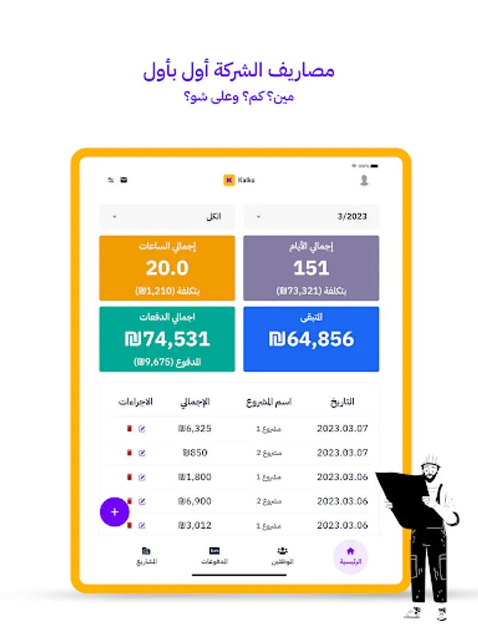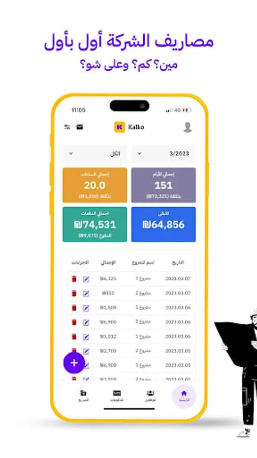 The Calco Aja app allows you to keep track of all numbers, analyzes, and everything that happens in your company, even if you are not there, in electronic, smart, and easy ways. The application is suitable for many types of companies, especially construction companies.