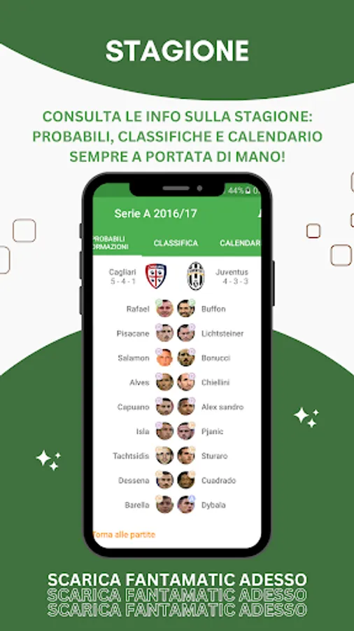 Get ready to relive football through the eyes of the Fantamanager. Download Fantamatic now and start your journey to greatness. The ball is at your feet, the fate is in your hands. Are you ready to dominate the fantasy football field?