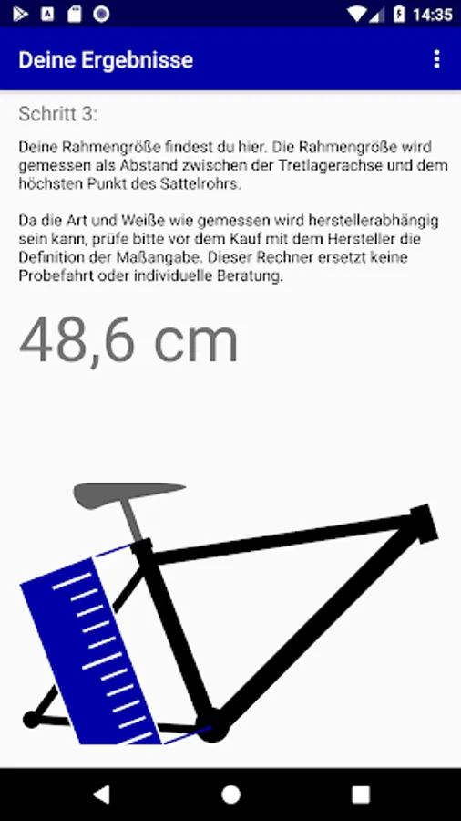 Get your individual bike frame-size. We support your inseam length or body height as input parameters.