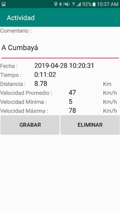 When finished press FINISH and ATHLETE records your career in the list, so you can review later, with data such as minimum, maximum speed, or average, the distance traveled and you can put a title or comments for you to remember where it was done.