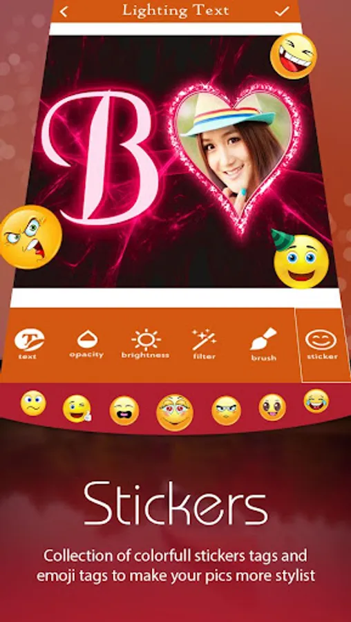 - Rotate, scale, zoom in, zoom out or drag the photo to fit the “Lighting Text Photo Frame" as you like!