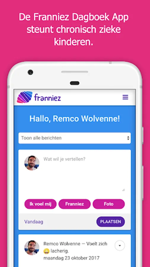 You experience a lot when you are chronically ill, think of investigations, nasty treatments, surgeries and hospitalizations. The Franniez Diary App saves your story and ensures contact with your friends and family at times when you are away.