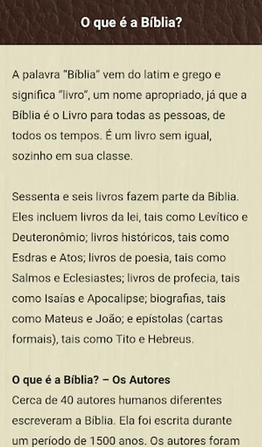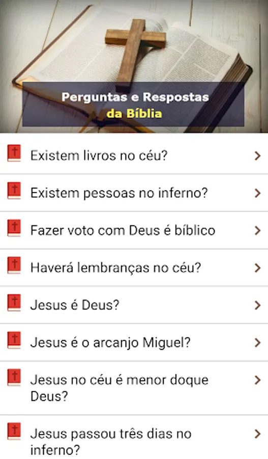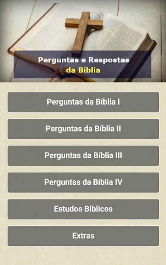 The application is composed of Bible questions and answers, Bible studies and extras.