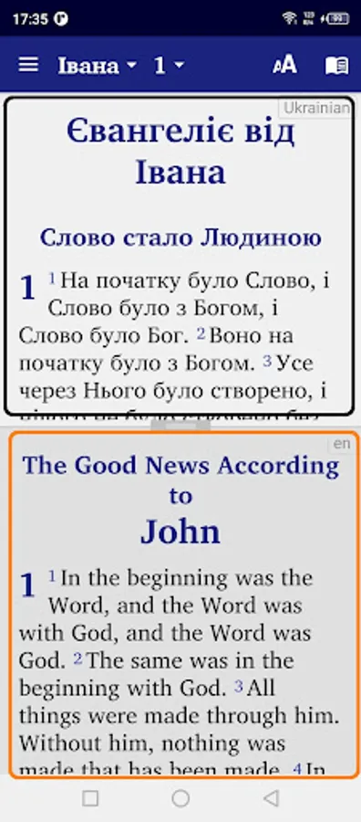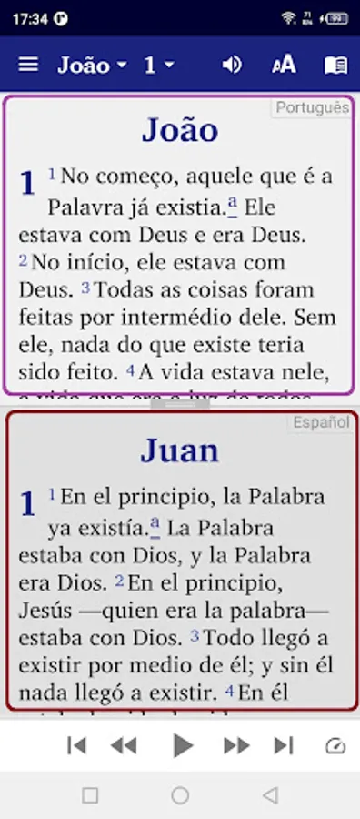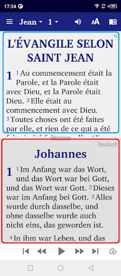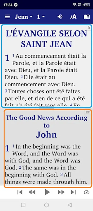 • Give your phone permission to download the audio files for the New Testament texts in French, English, Portuguese, Spanish, Ukrainian. Once downloaded, the audio files will remain on your device for further use in offline mode.