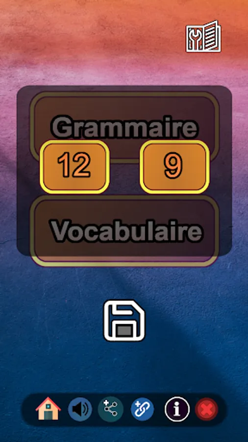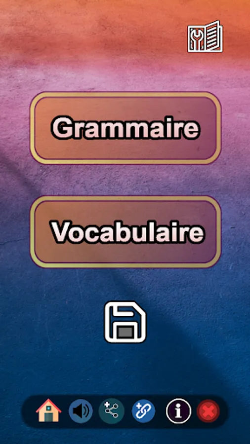 - the user starts from the application interface and sees the two windows: 1-Grammar, vocabulary.