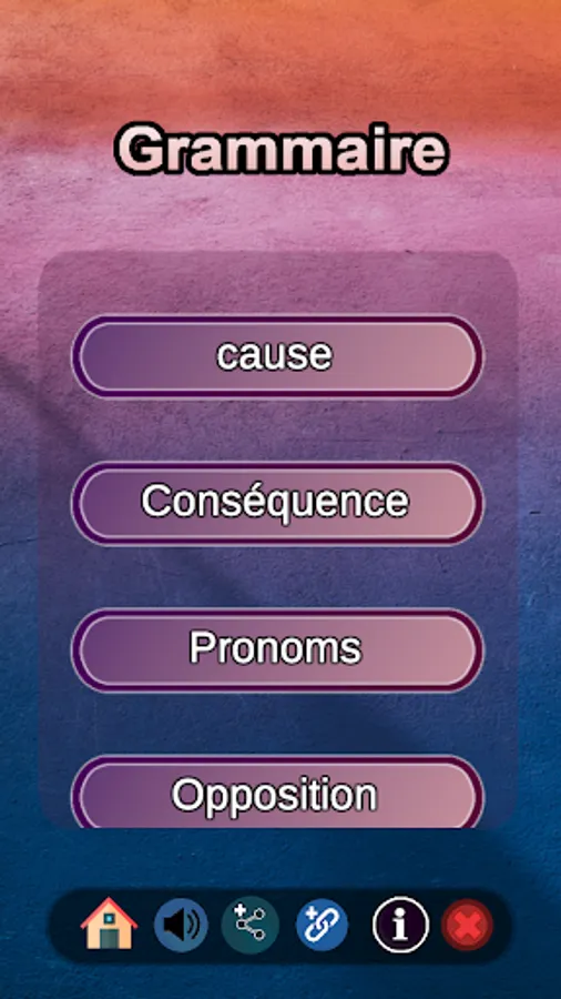 - if he chooses Grammar, he will find the grammar lessons in French and in each window there are subtitles and details.