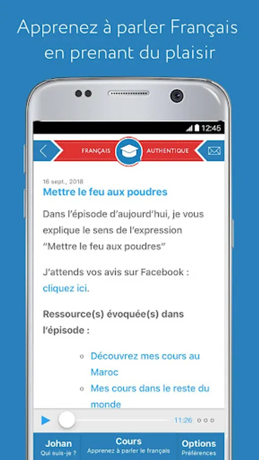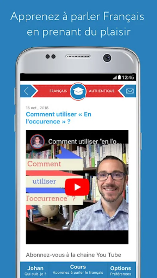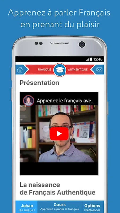 Welcome to the free official application of Français Authentique. My name is Johan and I created Français Authentique in 2011 to help you learn to speak French in an enjoyable and natural way.