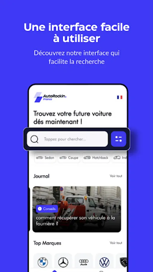 With the Autorockin France application, you have access to more than 100,000 vehicles, whether new or used cars in France, utility vehicles in France. Audi, BMW, Ford, Mercedes, Tesla or Volkswagen, with Autorockin France you will find the car that suits you!