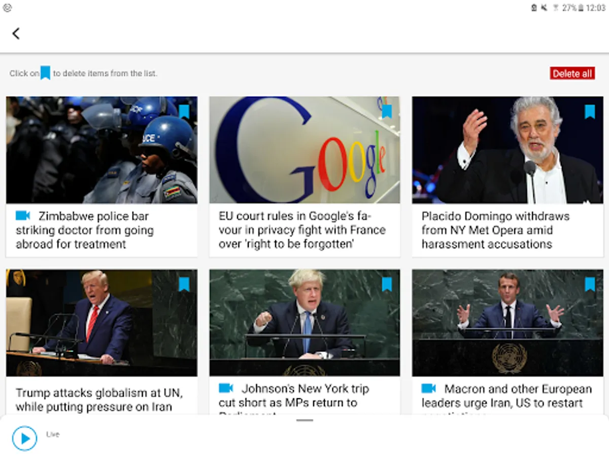 • Focus on the news from your areas of interest: Africa, Americas, Business, Sport etc.