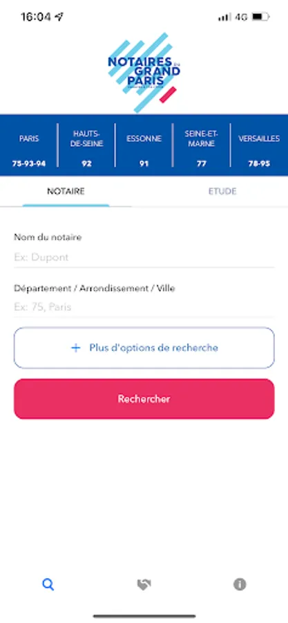Directory of all Notaries in Greater Paris, i.e. eight departments: (75, 93, 94, 92, 91, 77, 78, 95). This application makes it possible to find a notary or a study on geographical criteria (department, city, district) but also according to their professional practice (foreign languages, mediation, real estate negotiation,...)