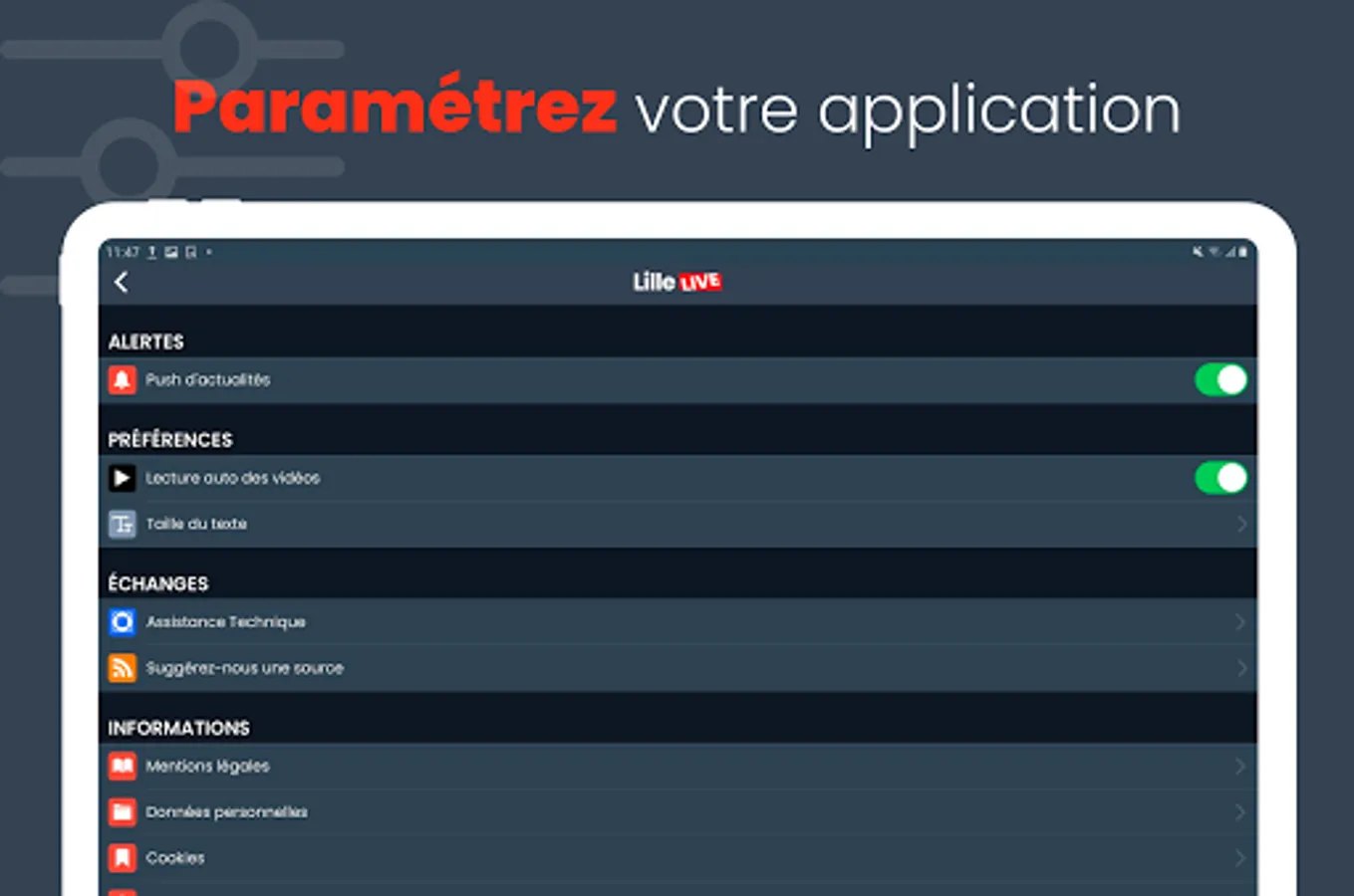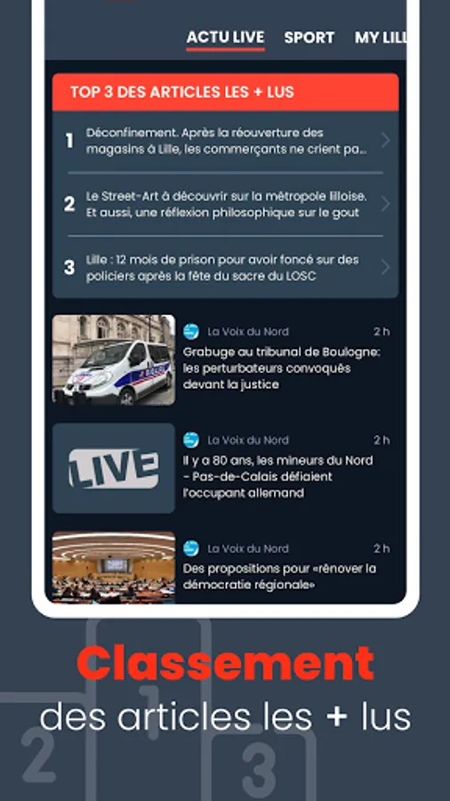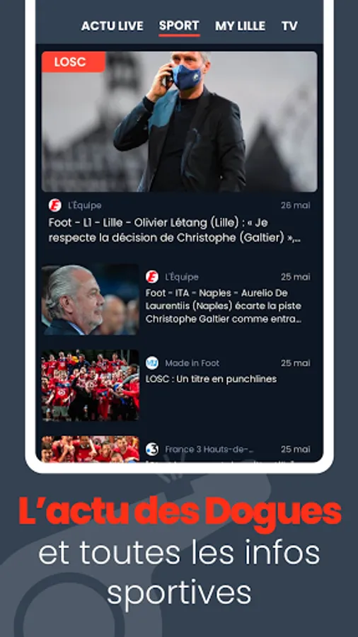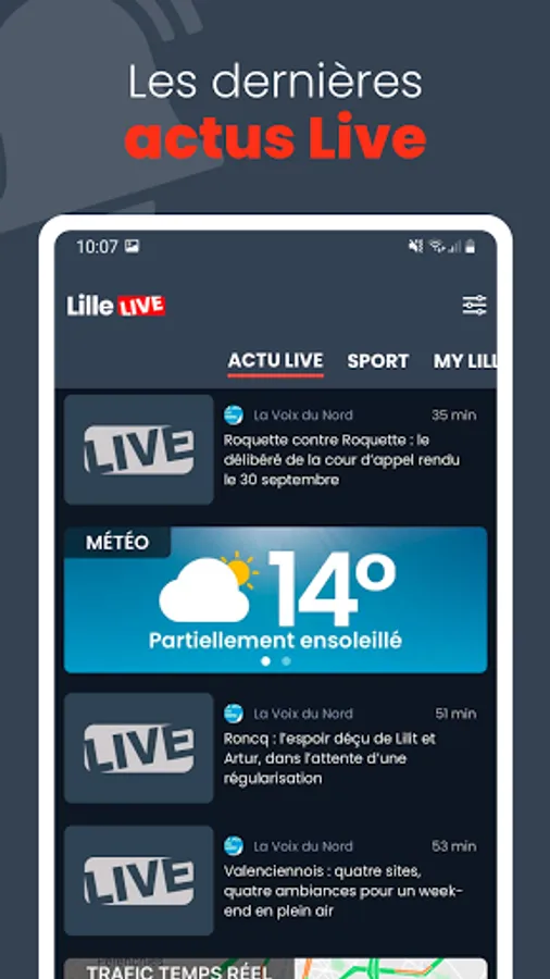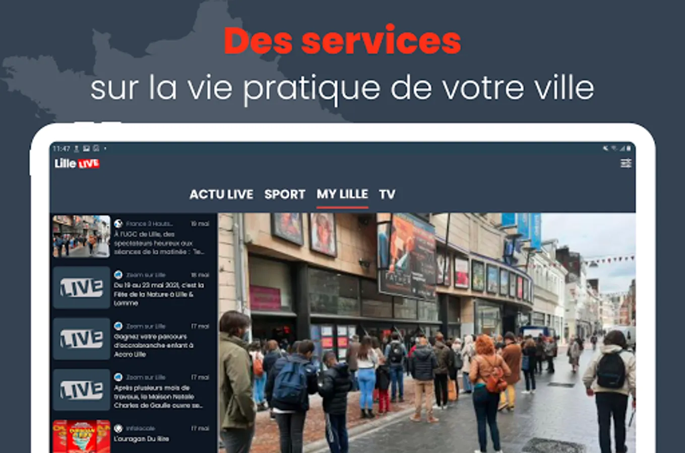 • Access the latest information in real time through our thematic sections: News Live, Sport, My Lyon, TV.