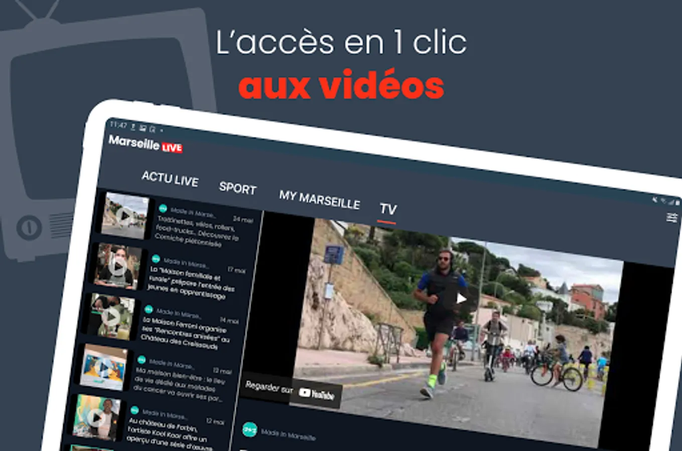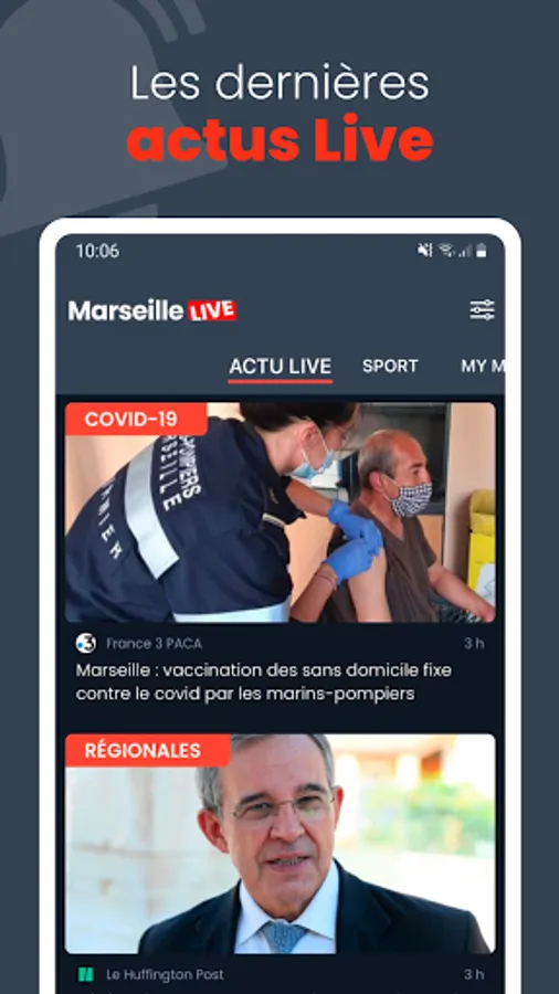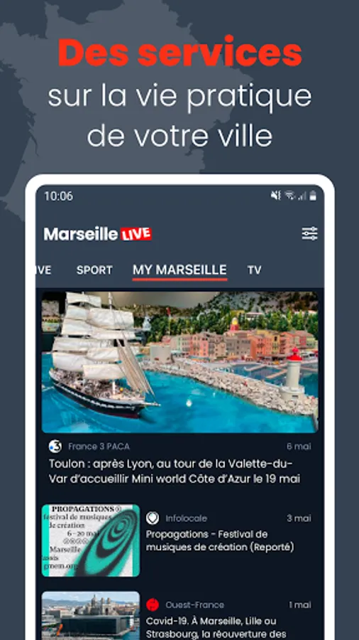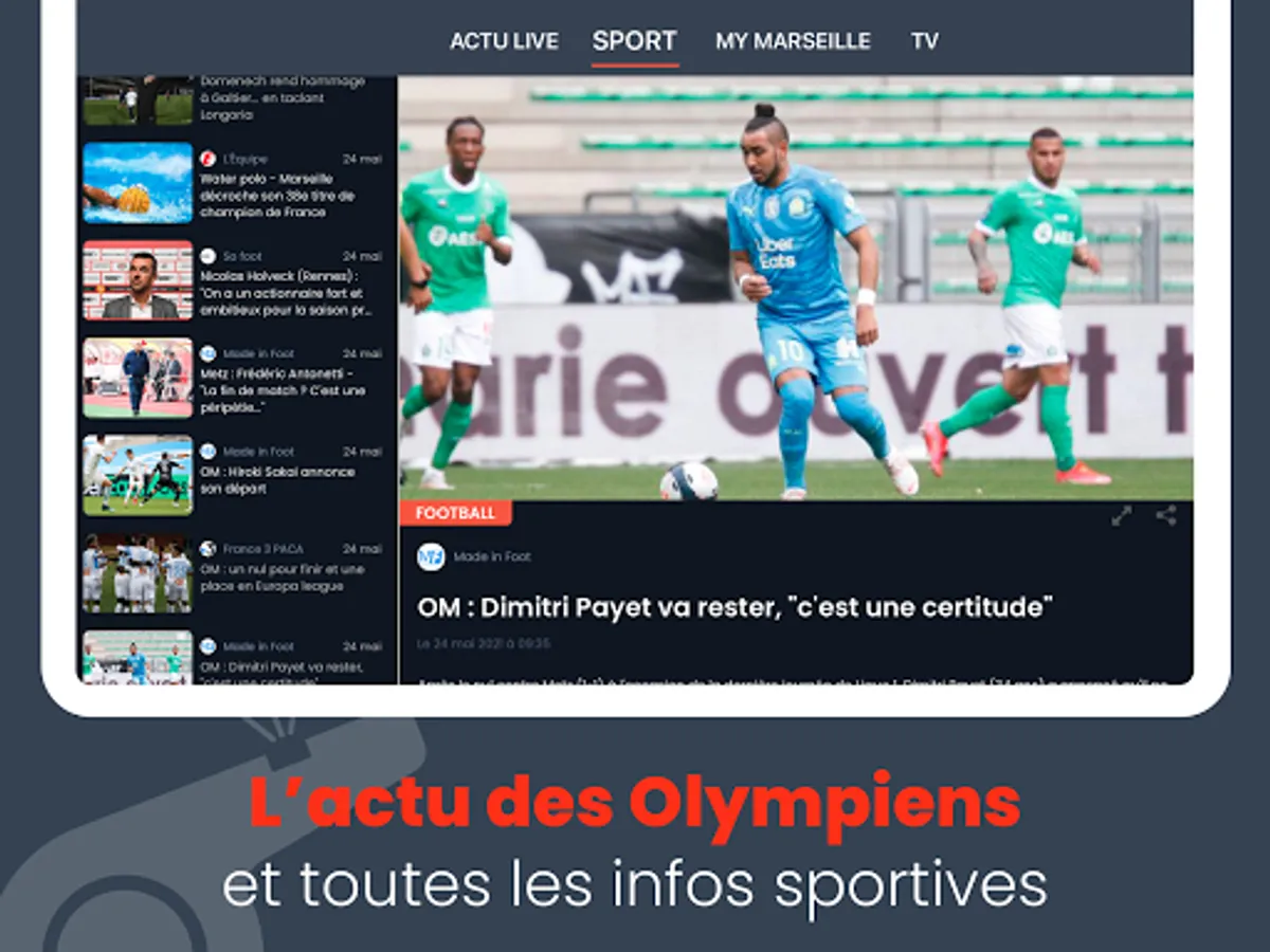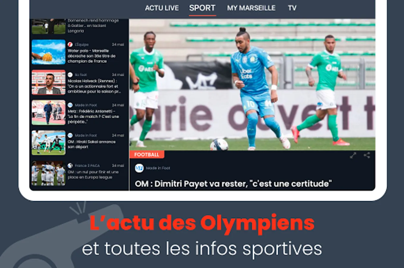 • Access the latest information in real time through our thematic sections: News Live, Sport, My Marseille, TV.