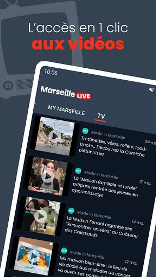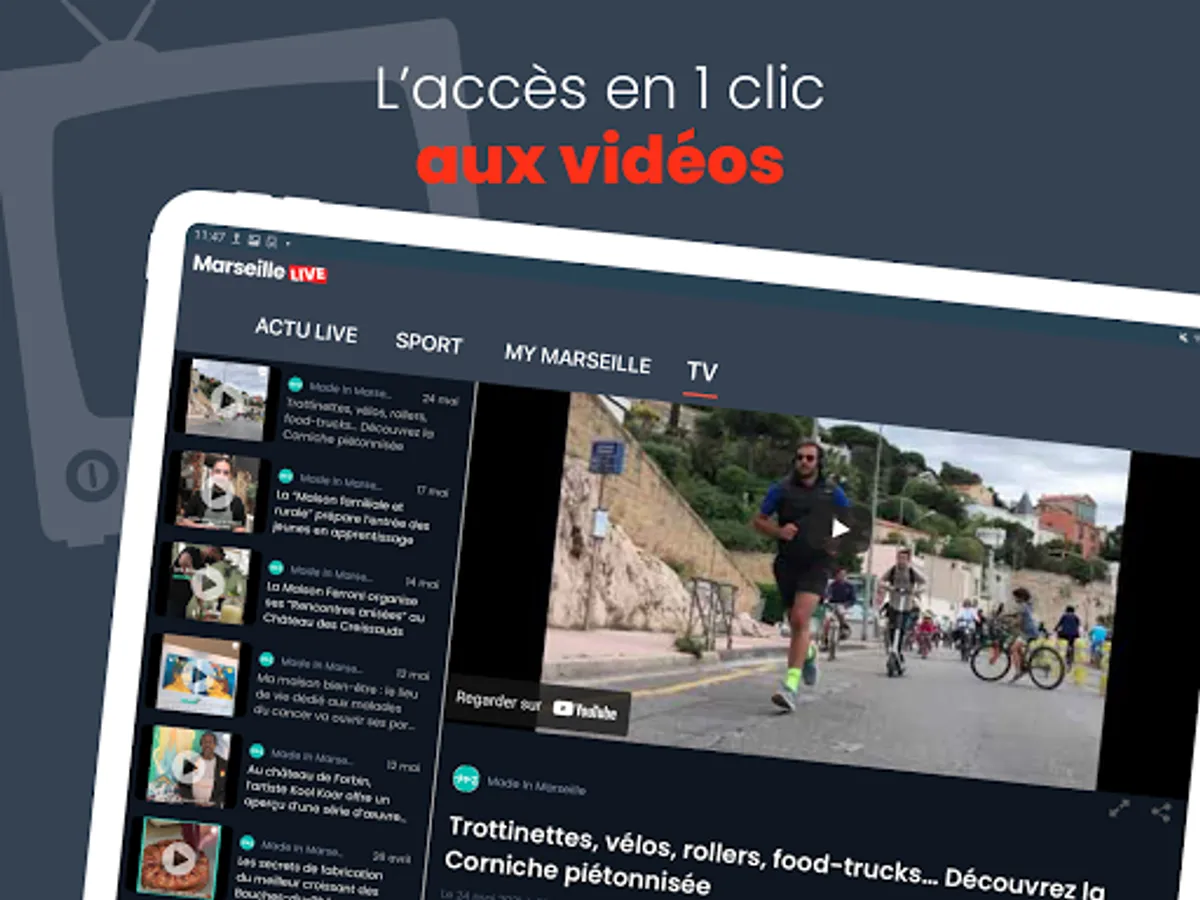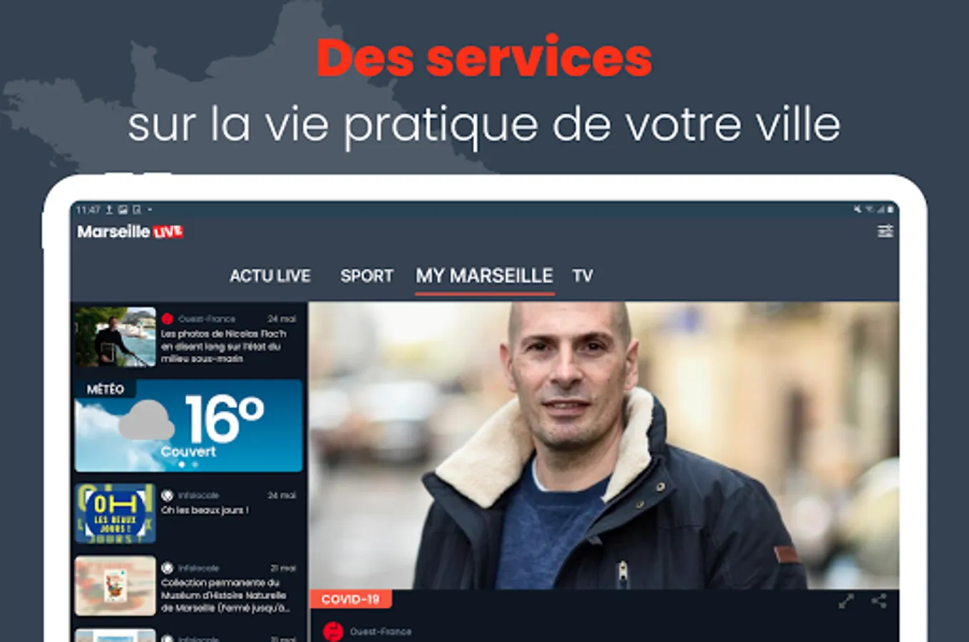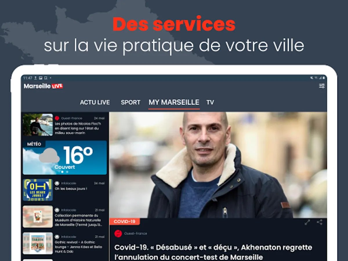 • Access the latest information in real time through our thematic sections: News Live, Sport, My Marseille, TV.