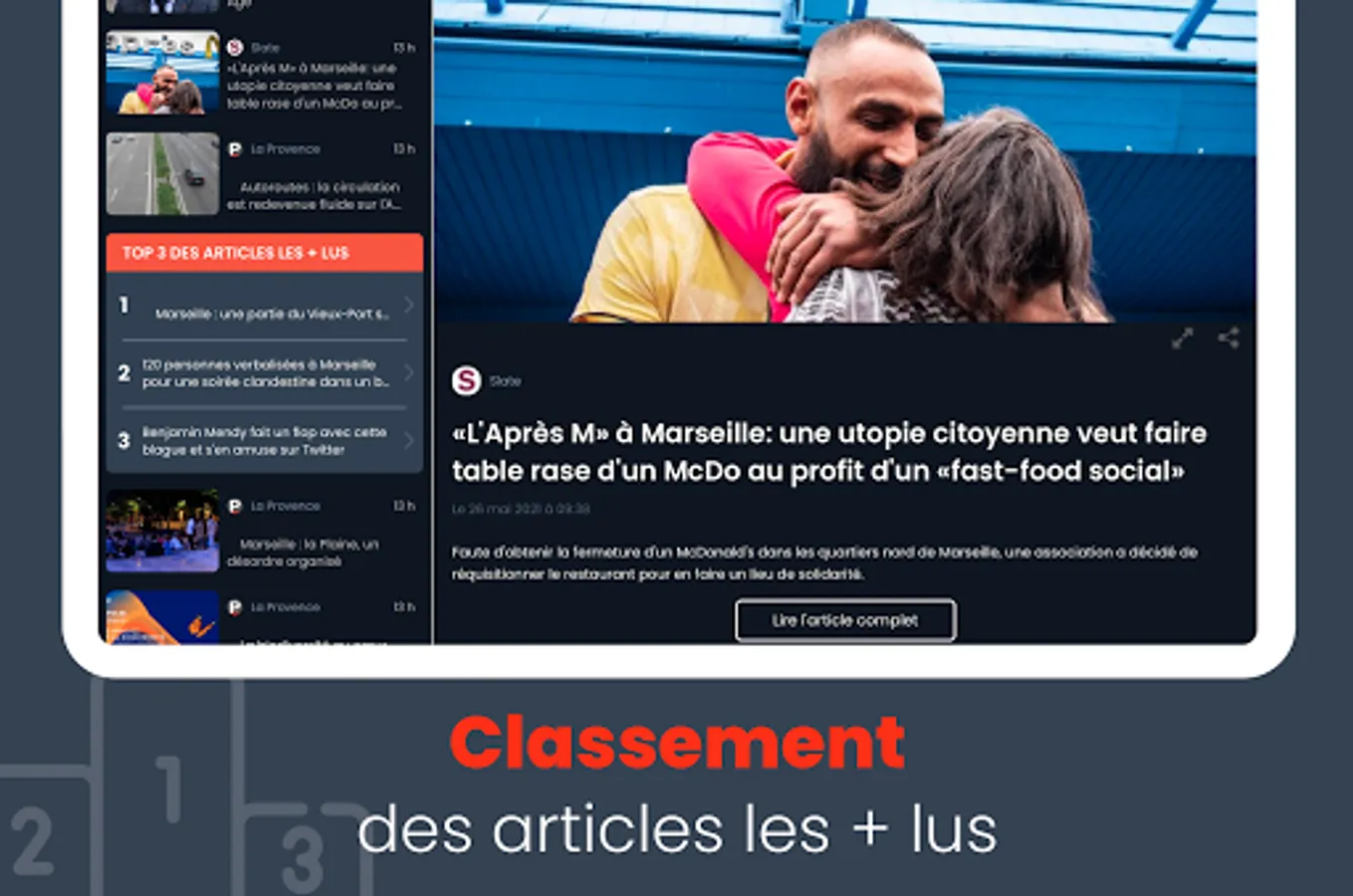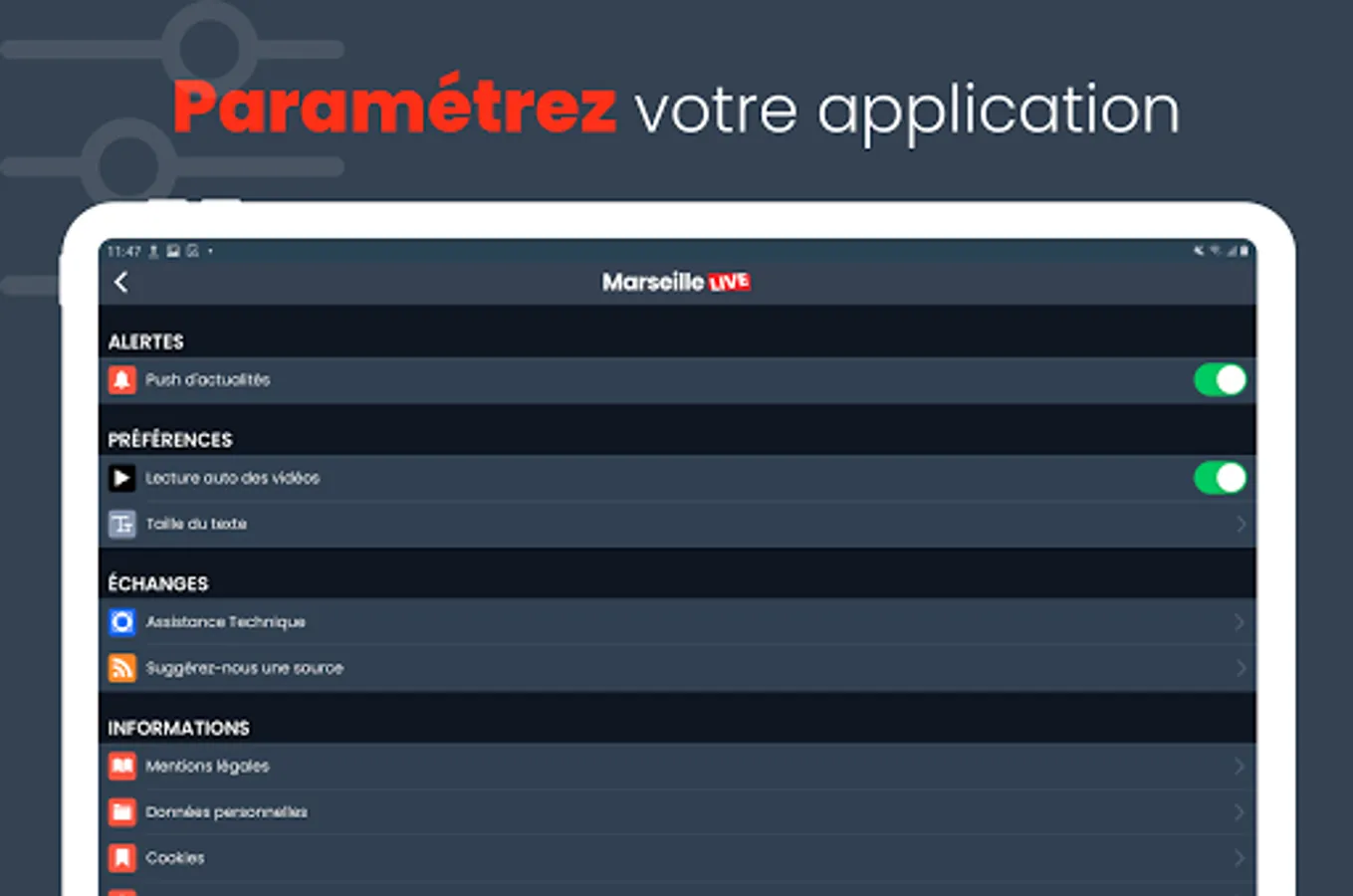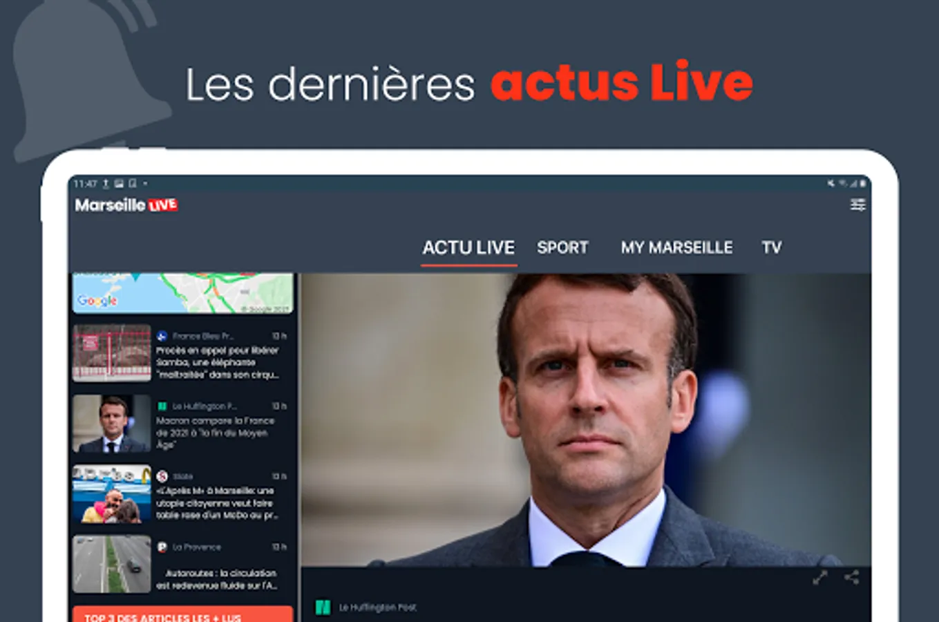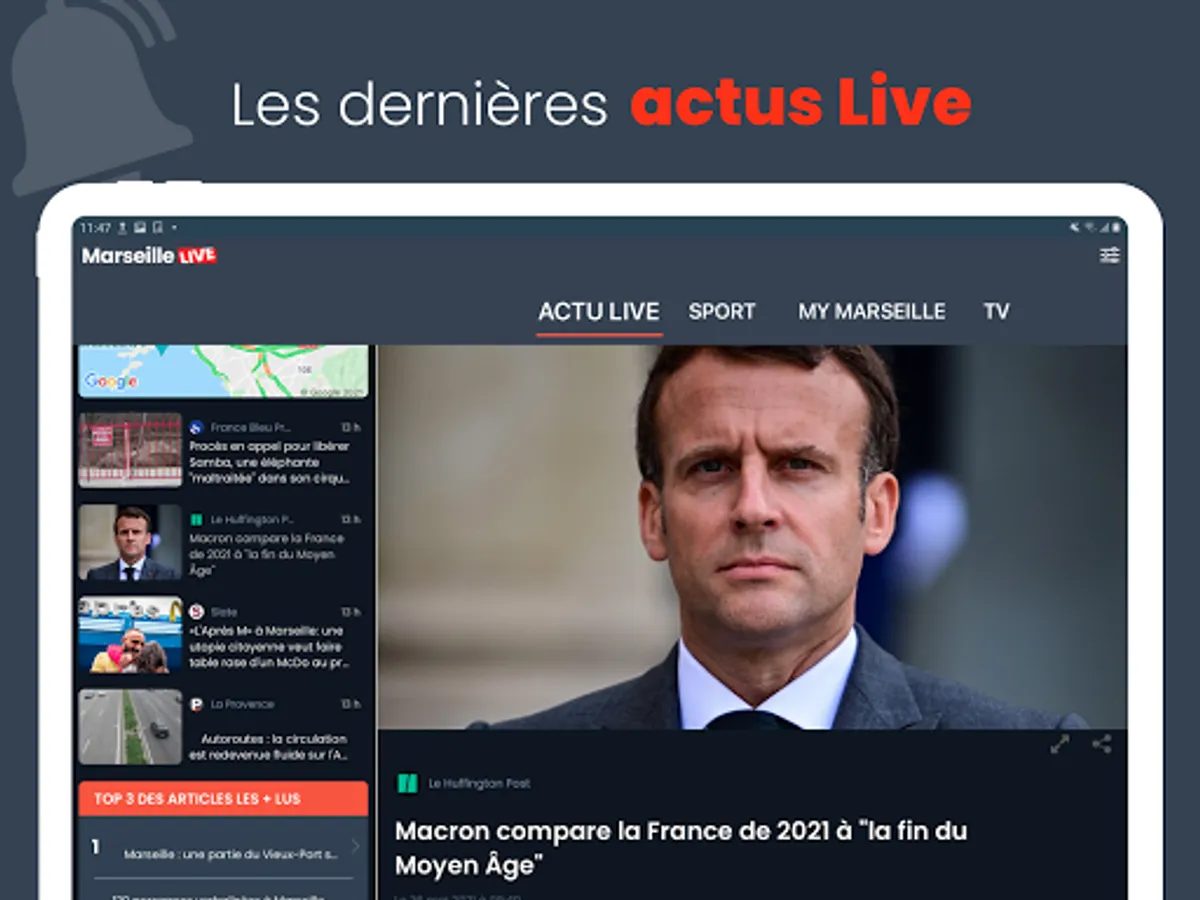 • Access the latest information in real time through our thematic sections: News Live, Sport, My Marseille, TV.