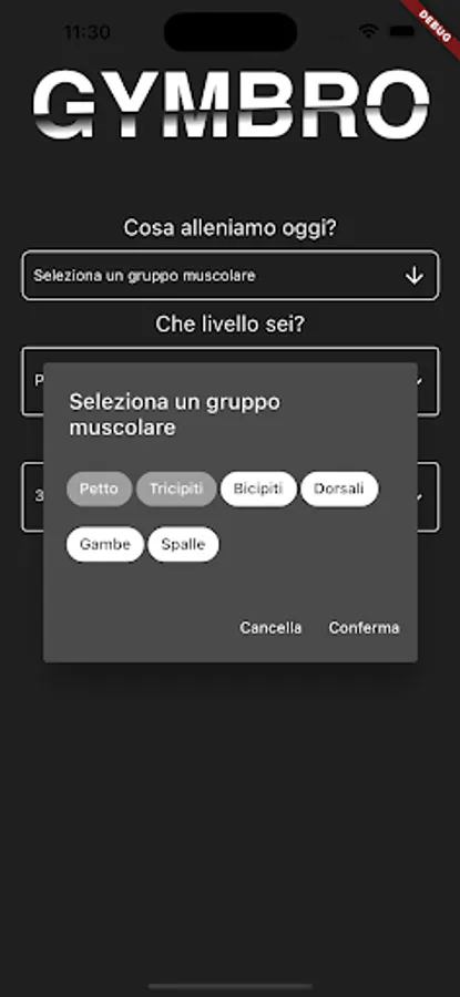Experience Level: The app offers three experience level options: Beginner, Intermediate, and Expert. Choose your level to ensure that the proposed exercises are suitable for your level of physical fitness and your current abilities. Gymbro will automatically adapt to your abilities and offer you a workout tailored to your level of experience.