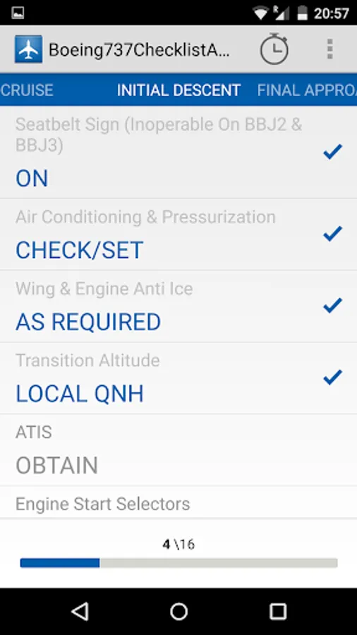 Boeing 737 Checklist Advanced App will help you to check all the procedures on a Boeing 737 plane. Supporting flight procedures, the app is providing a useful timer.