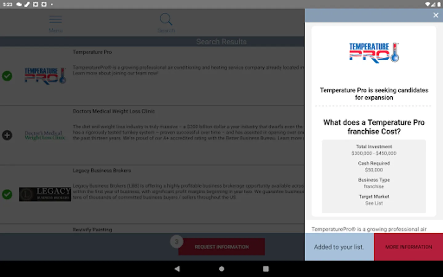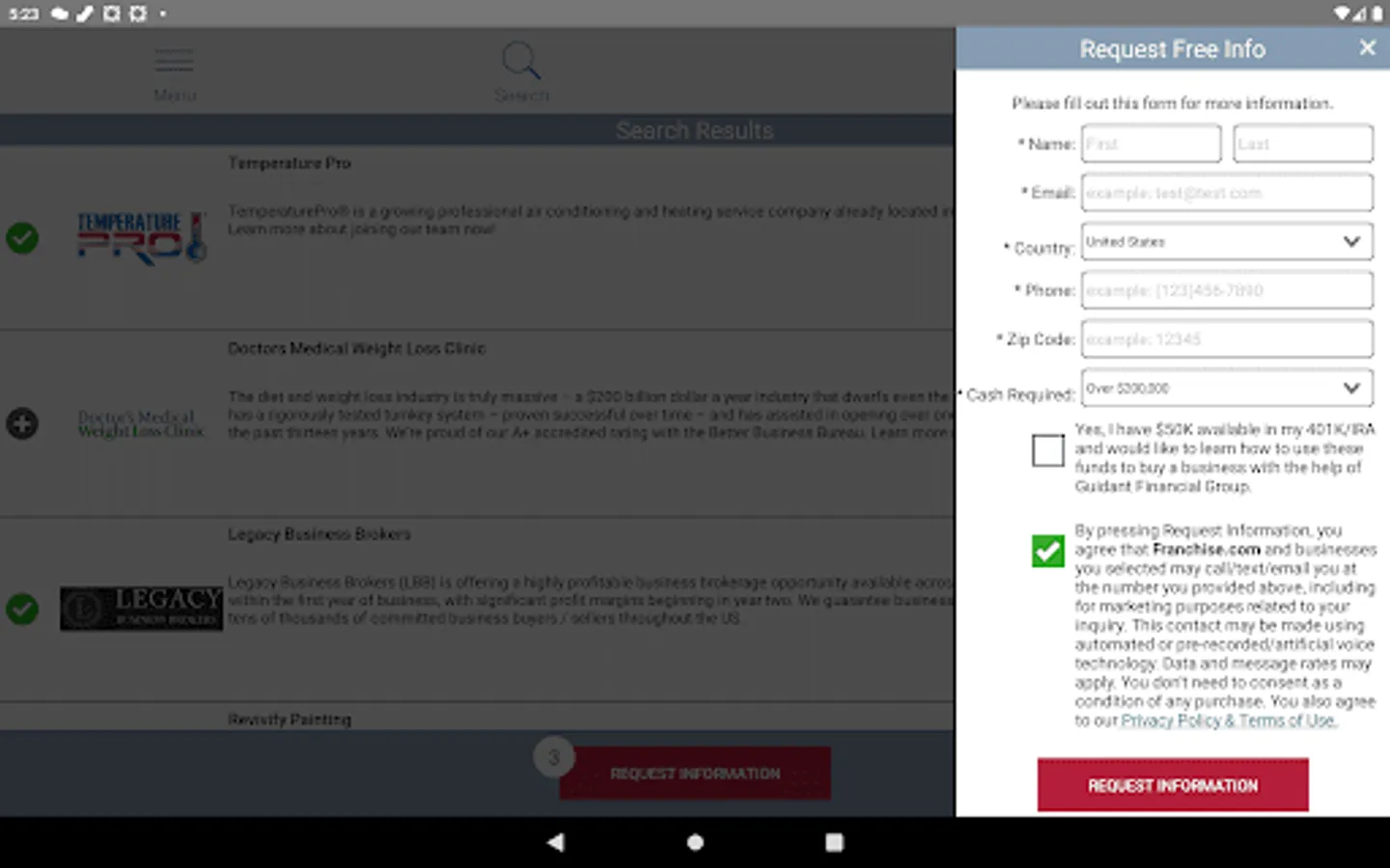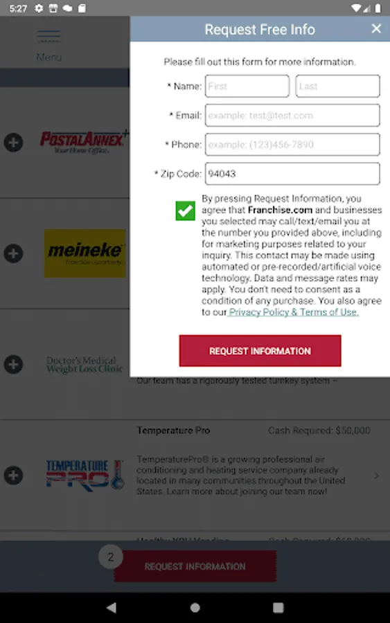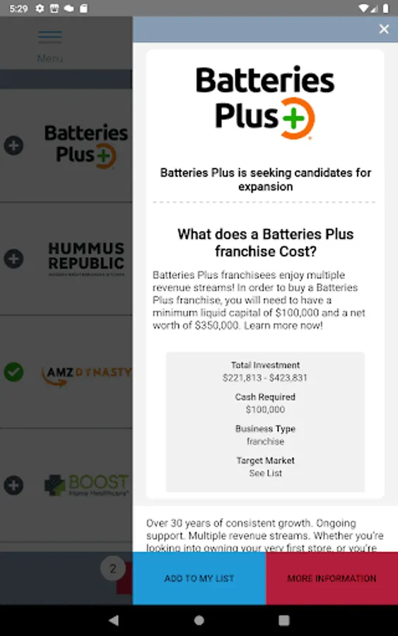 This app will help you make more informed decisions on your journey to starting a business. You can compare businesses to ensure you are making the most informed decision. It simplifies doing your due diligence. And our notifications will keep you up to date on new opportunities as they become available.