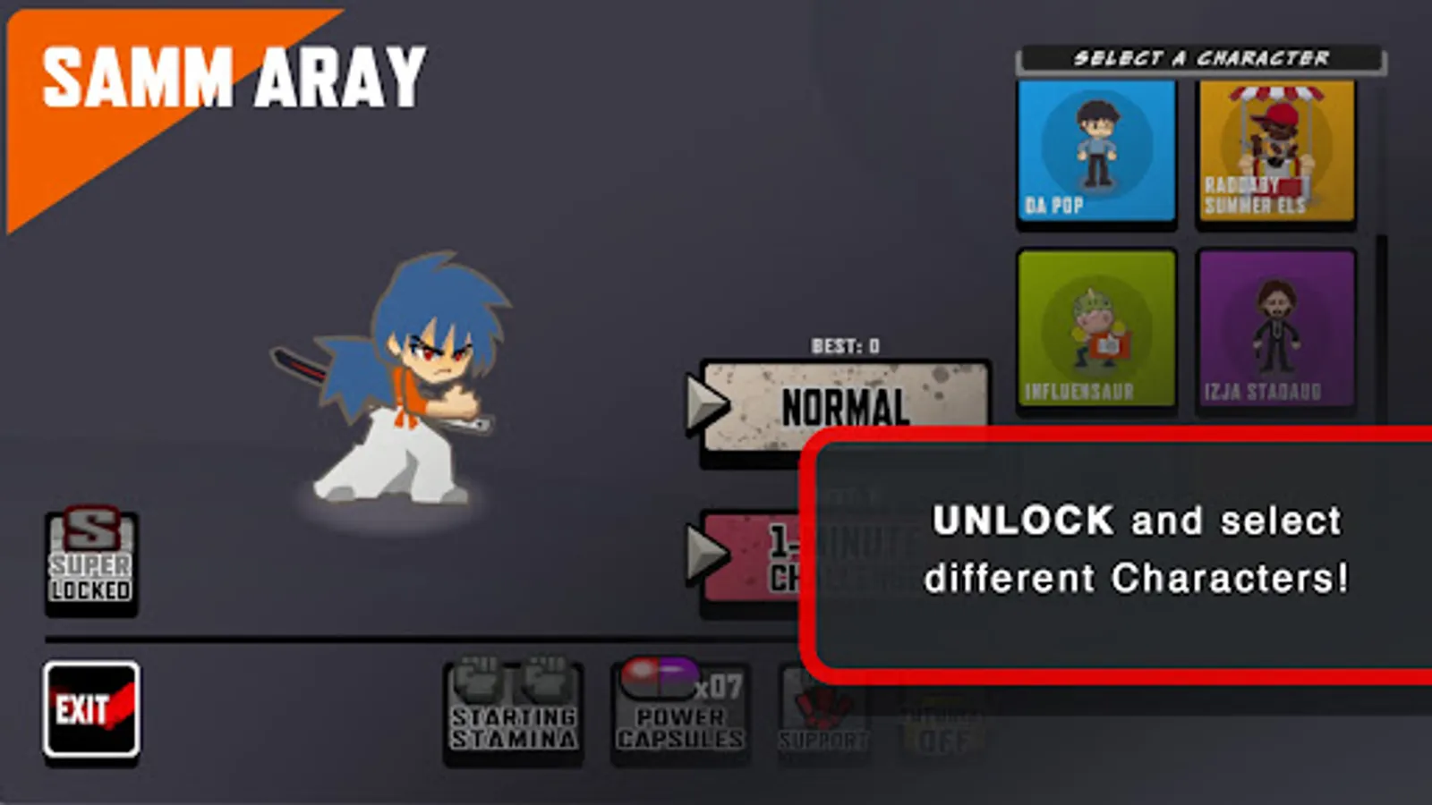 - Choose between two fight modes: 'Normal' and '1-minute Challenge'