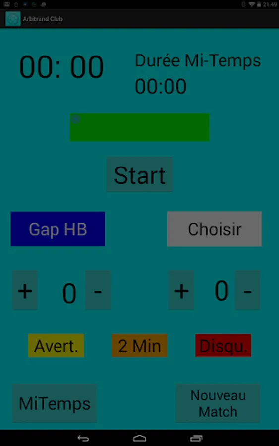 This application allows you to manage the arbitration of a handball match. It helps you to take the time, the score and disciplinary sanctions. You can set the game time, the color and the name of the teams, the score and the warnings, 2 minutes and disqualifications. If you are handball referee, it provides you, keep a stopwatch, a box and pencil to the goals and disciplinary offenses.