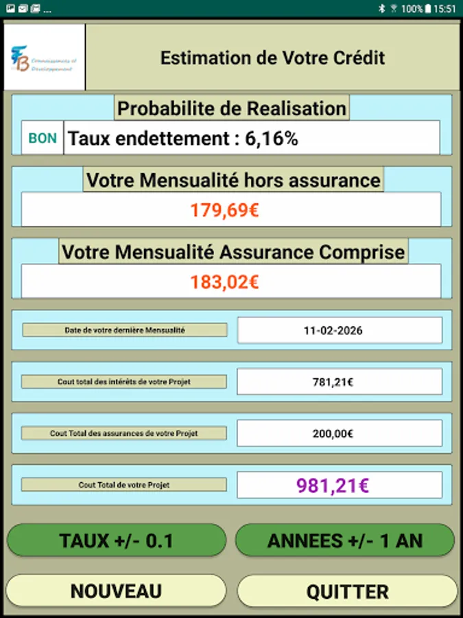 And in the end, it will allow you to make a simulation of 3 Credits so that you can make the best choice.