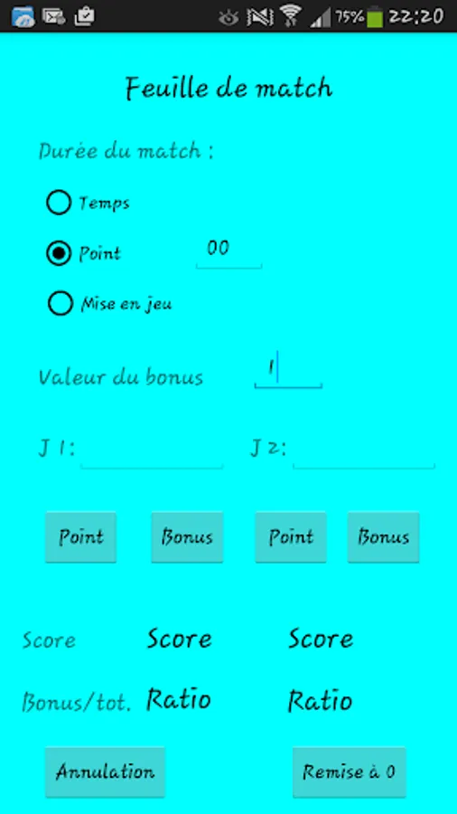 This application allows you to choose whether the game is to time, or number of items involved. It is possible to choose the value of a bonus and calculate the ratio of bonus and the number of times marked with ( bonus / (item + bonus)).