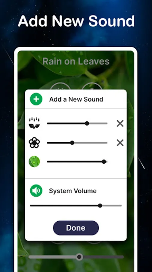 Relax your body & mind with the beautiful high-quality rain sounds. We have carefully selected different rain types that are perfect for relaxation or sleeping. You will enjoy this app whether you like thunderstorms, gentle rain, or calming beach. You can even customize the sounds as you like. With the help of mindfulness experts, we have created the best collection of calming ambient music that is great for practicing yoga, meditating, relaxing, and sleeping. Meditation Music contains twelve high-quality meditation melodies that you can customize to make the music truly yours—Add a bit more soft piano, or turn up the rain sounds. You can mix & match your favorite sounds on your relaxation journey to achieve Nirvana. Get amazing rain sounds, nature sounds, and relaxing music including rain on the Window, Rain on Leaves, Light Rain, Evening Lake, Rain on Roof, Rain on Sidewalk, Calm Beach, Peaceful Water, Rain on Tents, Ocean Rain, Rainy Evenings, Thunderstorms, and much more.