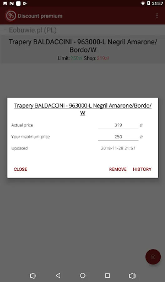 It will check prices of selected by you products (in selected shops) every day and show notification if price will be lower than maximum price defined by you.