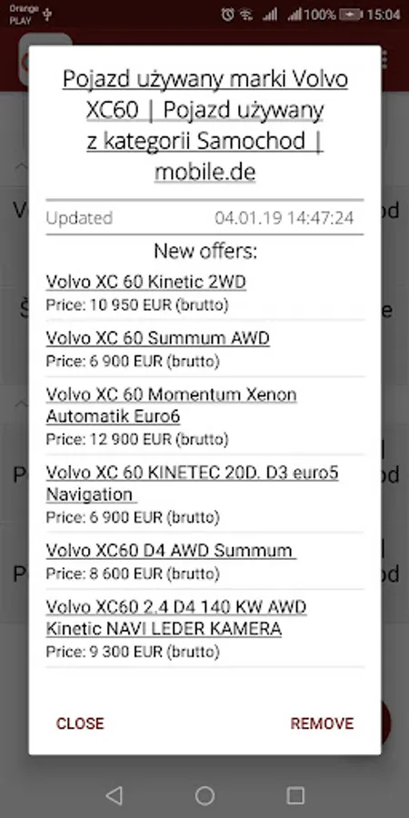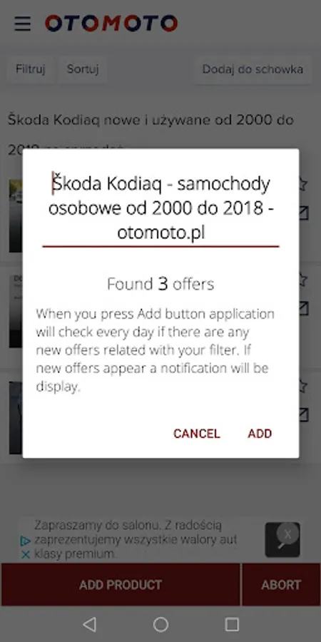 This app will inform you if there are any new offers in your search filter in dedicated web pages.