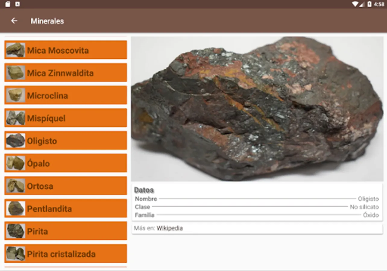 Thanks to IES La Malladeta de Villajoyosa (Alicante), for allowing me to use its facilities and copies of rocks and minerals to develop the application.