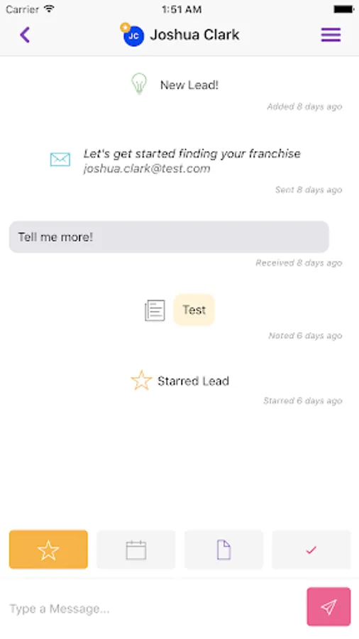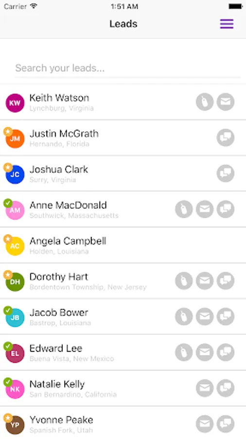 View your leads in rich detail (including statuses, interactions, contact and address information, and source). See your past conversations with them and send them messages right on your phone. Managing your funnel has never been easier!