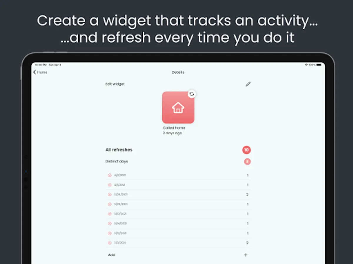 Simply create a widget and add keep track of every time you did something.