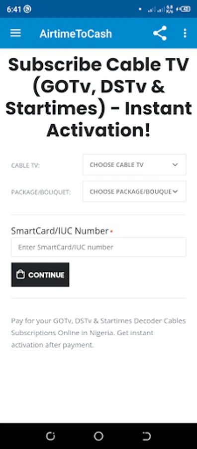 CABLE TV: Don’t miss that TV programme. Subscribe your Cable TV (DSTv, GOTv & Startimes) at the cheapest price and get instant activation.
