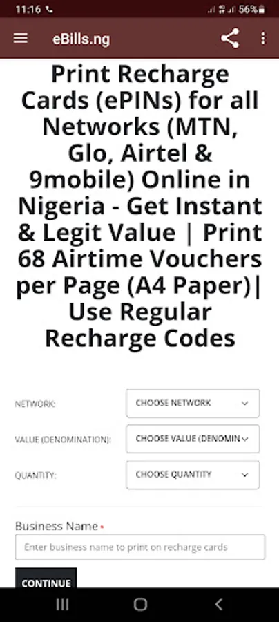 PRINT RECHARGE CARDS (ePINs): Print Airtime Vouchers at the best rates. Use the regular recharge codes. Print 68 Recharge Cards on a Paper (A4).